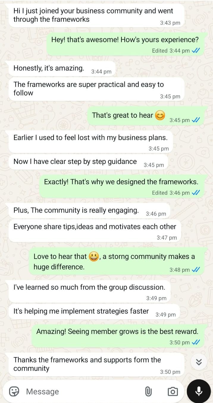 Yes. You get WhatsApp group access to connect with other business owners, share insights, and learn from real discussions.